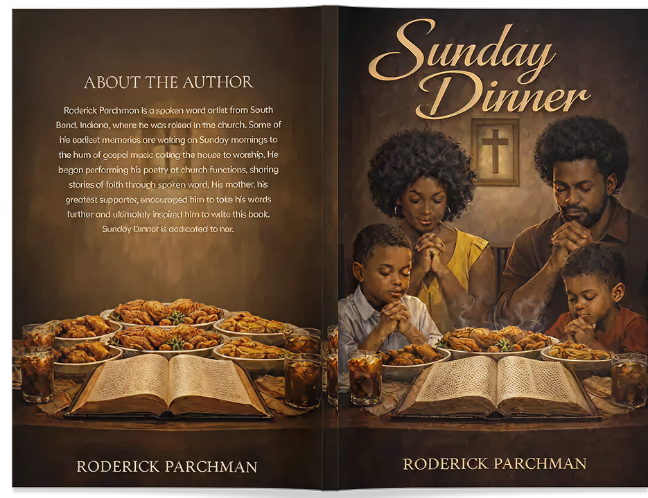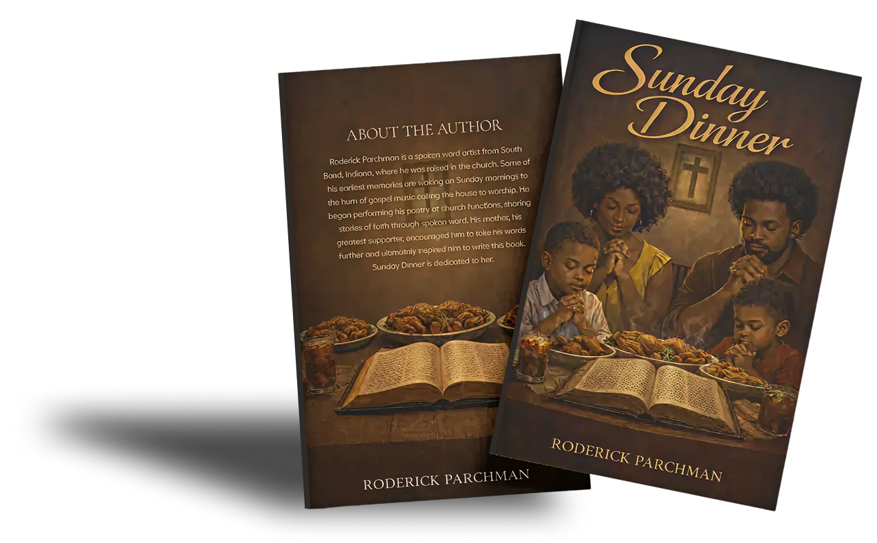 Immerse yourself in the powerful, soul-stirring journey of Roderick Parchman’s Sunday Dinner, a raw collection of spoken-word poetry that captures the deeply personal story of faith, grief, and redemption.